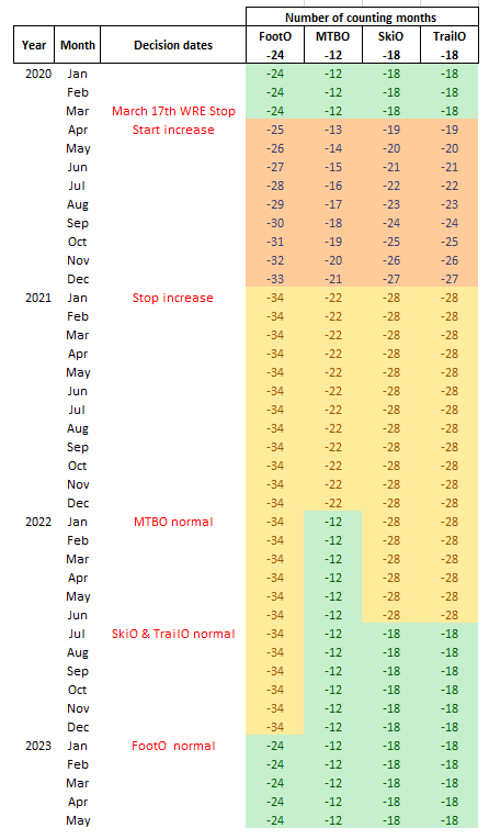 August 2020 - correction of a mistake in the Covid-19 adjusted counting months table. TrailO was by mistake set to 24 months as the normal counting period, but it shall be 18 months
